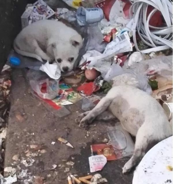 網友這才注意到,在牠的旁邊,還有一隻狗狗,確切的說,是一隻狗狗的屍體⋯⋯