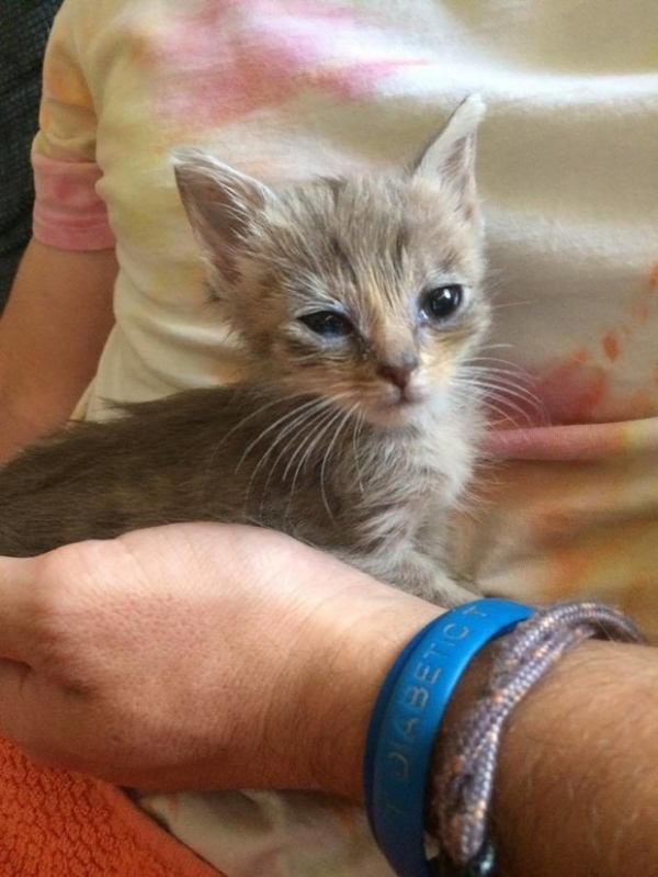 根據外媒petfilm的報導,故事發生在澳洲,這隻只有四週大的小喵在街上被一位暖男發現,發現牠的時候小喵狀況非常糟,身上超螞蟻,真的非常可憐......