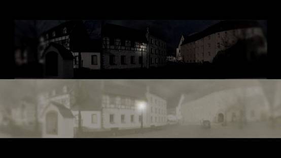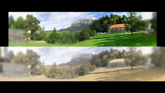 圖為人眼視角,下圖為貓眼視角。因為貓眼的視場角度更大,眼中呈現的畫面因此要比人類更寬▼