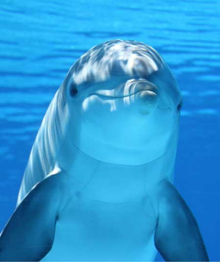 海豚的皮膚光滑無毛,身體矯健而靈活,善於跳躍和潛泳,是在水中行動最迅速的哺乳動物,擁有發達的聲納系統,活動時主要依靠回聲定位功能,在水中和空氣中均有極好的聽力。鼻孔在頭頂上,用於出水換氣,是不是很厲害呢!