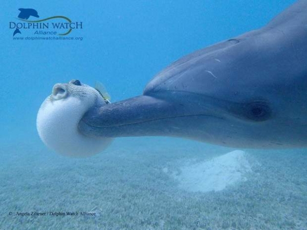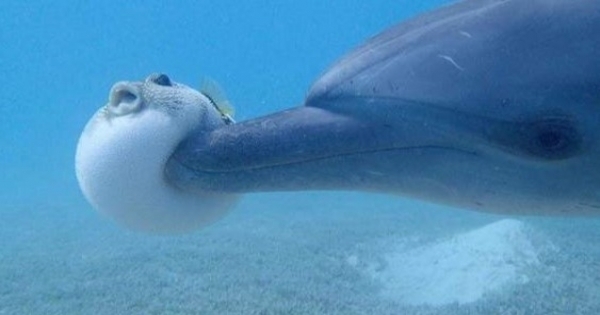 那麼為何海豚要逗弄河豚勒?原來是因為海豚會透過咀嚼河豚,藉由河豚的毒素讓自己情緒上變得很嗨!果然海豚是超高智商的哺乳類呀~