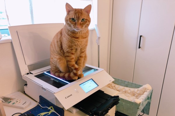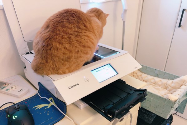這天推主忙於消耗大量文書作業,非常疲憊地移走籃子準備複印文件時,Kinako突然跳上印表機求關注,這時推主就默默地按下「列印鍵」……