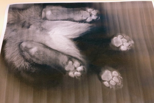 一張高清畫質的貓咪「私密照」就這麼誕生啦!由於Kinako不想離開列印機,一直打斷推主作業,為了報復推主就將牠的「底盤」列印下來公佈在推特上,平時很難看見的肉球、肚子甚至蛋蛋都看得一清二楚,