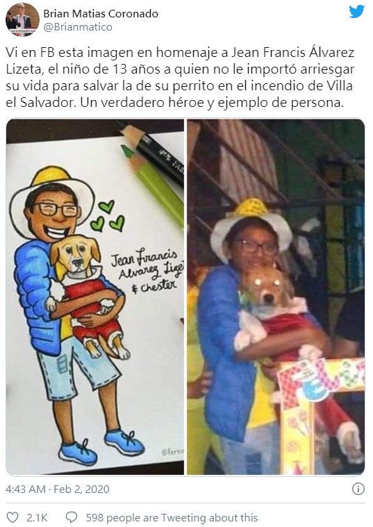 後來這段動人的故事被新聞報導後,一名畫家也將吉恩生前抱著雷斯特的身影畫了下來,以此紀念這位勇敢的男孩與他摯愛的狗兒。
