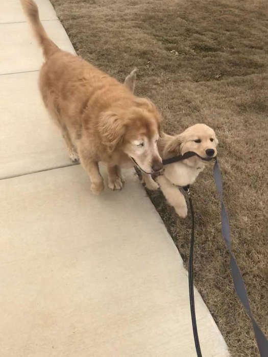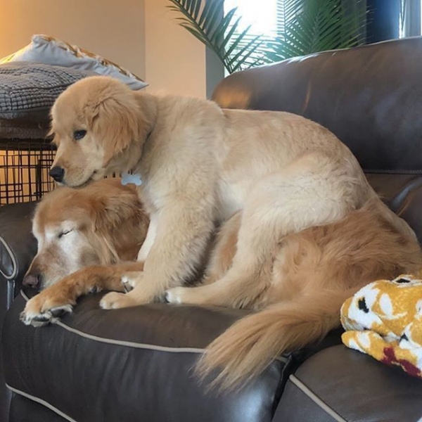 牠和所有小奶狗一樣正處在調皮搗蛋的時期,有使不完的精力、用不完的熱情,這種情緒馬上就感染了已經習慣佛系生活的Charlie,牠絲毫沒有嫌棄這位鬧騰的新朋友,兩隻狗很快打成一片,成了忘年交。