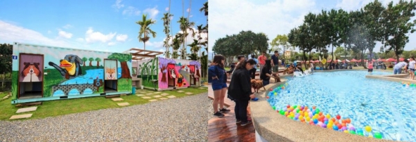 南投第一家結合住宿、餐廳、露營以及寵物的主題度村,園區內都以寵物為主題,不論是犬腳印草皮、超大骨頭都讓人萌心大噴發,甚至還有專屬狗狗的寵物游泳池!