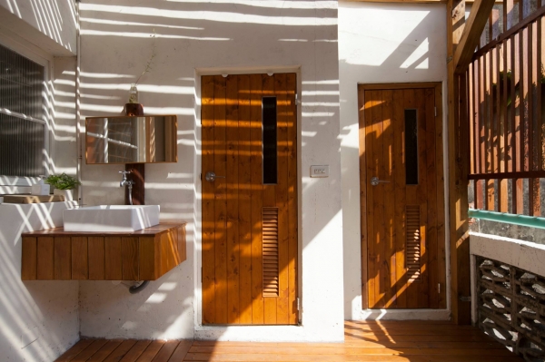 一樓是主人的工作區,二樓則是住宿區,中間有個別有洞天的天井,狗狗可以在其中隨意走動。