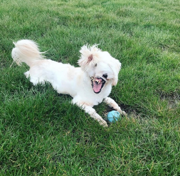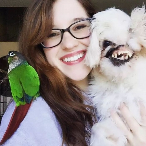 現在,Mugsy已經完全適應了新生活,和新主人家的狗狗、還有一隻雀鳥成為了好朋友。