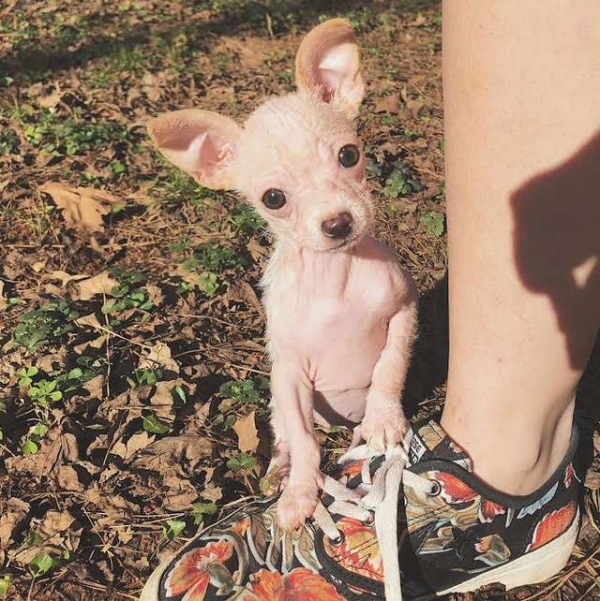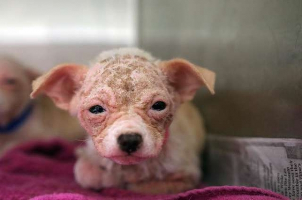 圖中的狗狗「皮帕」(Pippa)是一隻才七周大的小狗狗,第一眼看到牠的人,都不敢想像...牠到底遭遇了多少辛苦,皮膚皺巴巴的還沒有什麼毛,小小年紀就承受著如此的痛苦。