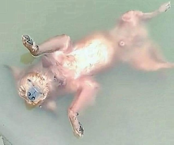 網友四處尋找失蹤的愛犬,當他好不容易在河邊發現牠時,狗狗卻漂浮在水上一動也不動,主人崩潰地立刻哭出來,正準備將牠打撈上岸時,沒想到下一秒竟然讓他超傻眼...