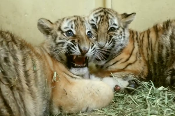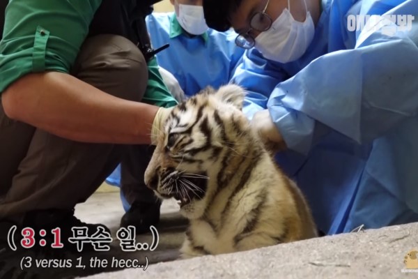 老虎在韓國已經被視為瀕危動物,日前韓國一間動物園好不容易將一對老虎成功配對後,生下兩隻小虎寶寶Mugung與Taebeom,為了讓牠們開始到戶外區生活,園方將為兩隻小萌虎注射「虎生」的第一次疫苗。