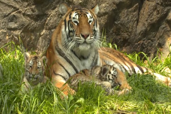 在做足事前準備後,園方讓虎媽媽Geongon與虎寶寶們開始到戶外區自由探索,當小老虎們第一次走到室外時雖然有一點緊張,不過好奇心強的牠們很快就開始四處遊走,甚至調皮的Mugung一直想學馬麻到水池裡戲水,讓馬麻非常忙碌地不停將牠叼上岸。