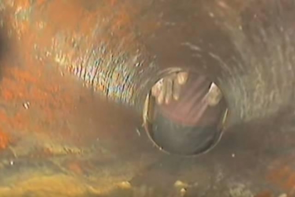 由於排除管道相對來說過於狹窄,消防員無法爬到裡面去,他們只能找來繩子希望狗狗能夠主動的鑽進去。