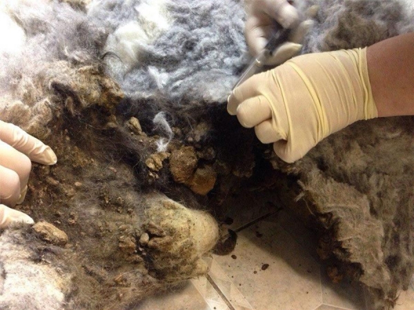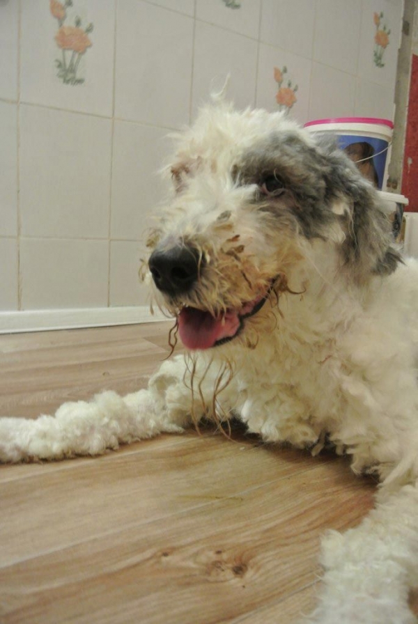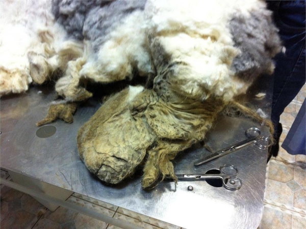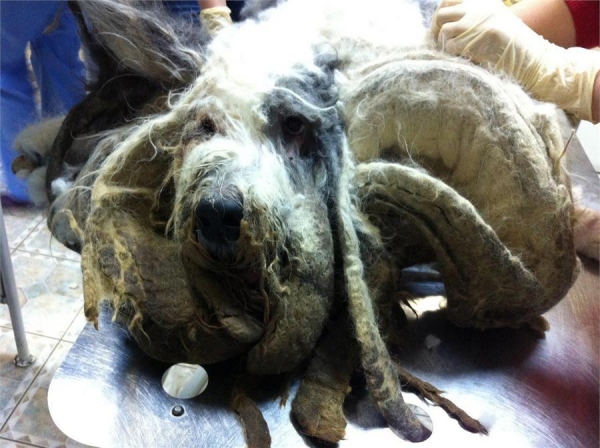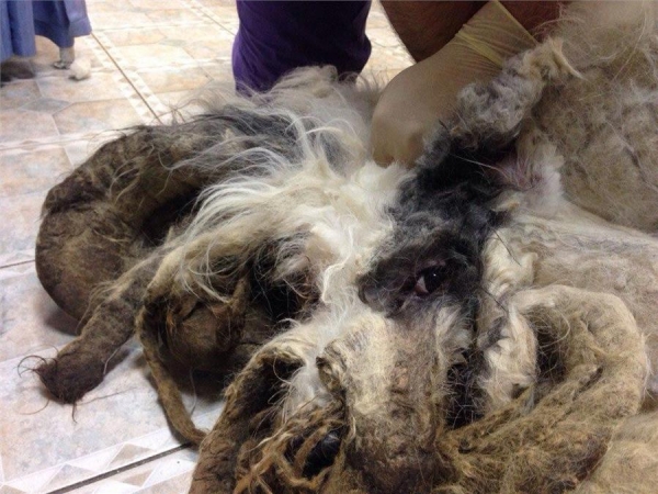 救助人員將可樂的毛髮剔除,給牠洗澡上藥。讓人吃驚的是被剪下的毛髮重達3千克。