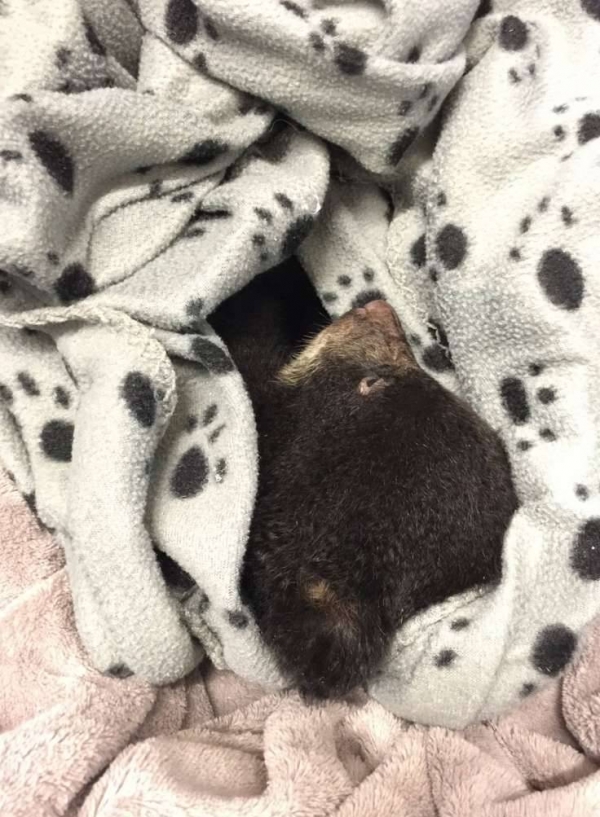 柯瑞表示,這隻小熊動也不動,他擔心牠是被拋棄,或受到獵人所傷,便用衣物把小熊包起來,帶回車內。