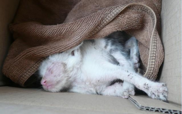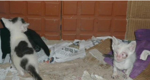 於是趁狗媽媽外出的時候,我把一隻眼睛有問題的貓咪給帶走了……
