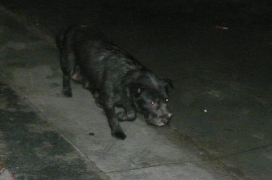 附近小餐館的老闆說,這狗是人家扔掉不要的,再附近流浪已經很久很久了,好像是2歲了,最近突然變得很凶。
