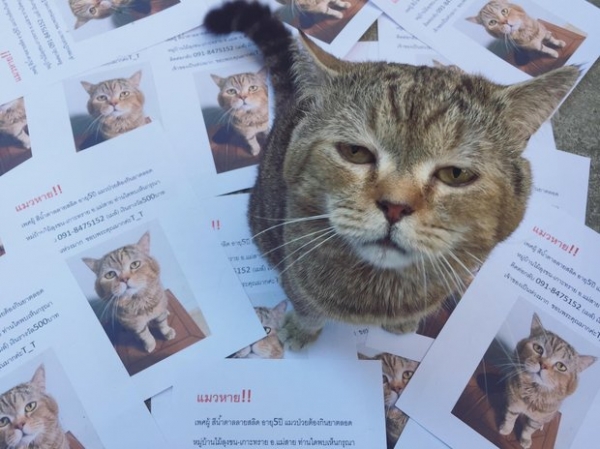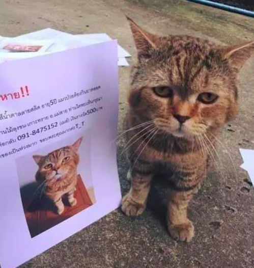 ▼在泰國,也有一位粗心的主人,以為自家喵皇失蹤了,結果海報印好後......