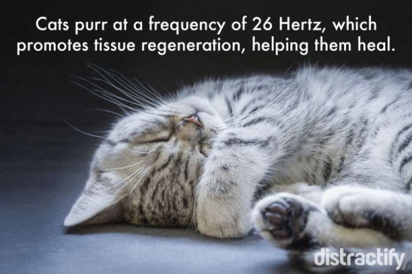 2. 聽過貓咪的呼嚕聲嗎?那個讓人著迷的頻率正好是「26赫茲」,據說這個頻率可以讓牠們的傷口更快癒合喔~太神奇了!